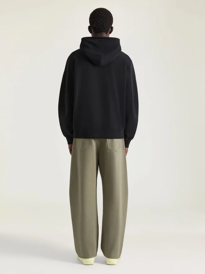 Răsunând moștenirea couture a Givenchy, cusăturile curbate și inversate conturează mânecile și picioarele pantalonilor pentru a crea o siluetă sculpturală.