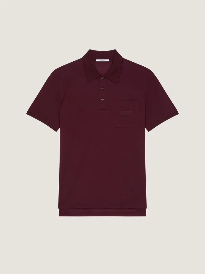 Eticheta Givenchy devine o formă subtilă de ornament, gravată, cusută sau brodată pe articole de îmbrăcăminte. Tricou polo cu mâneci scurte
