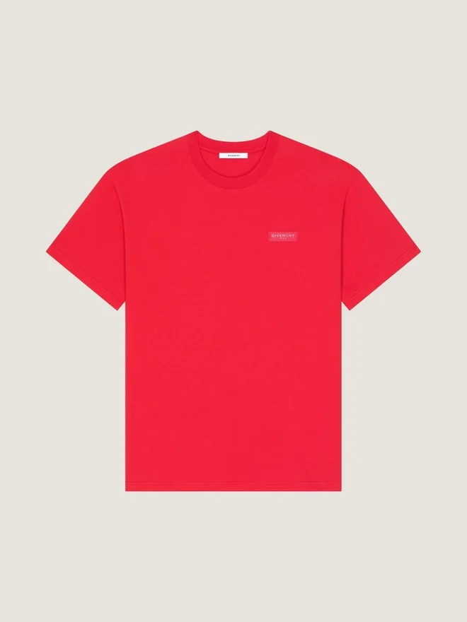 Eticheta Givenchy devine o formă subtilă de ornament, gravată, cusută sau brodată pe articole de îmbrăcăminte. Tricou cu mâneci scurte din
