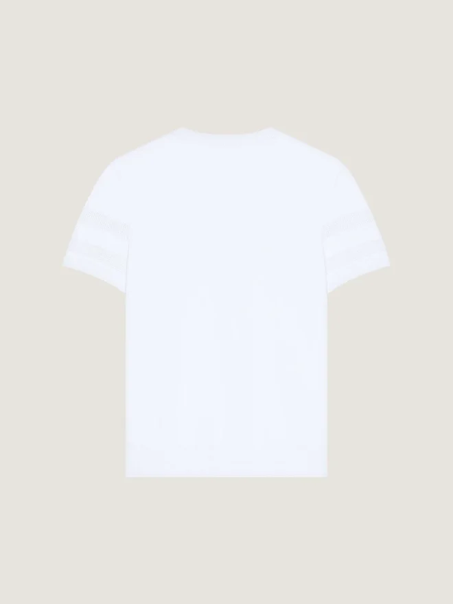 Logo-ul Givenchy Paris se inspiră din referințele vintage ale stilului colegial, reinterpretând literele clasice prin aplicații subtile, contrastante și brodate.Tricou cu mâneci scurte din tricot de bumbac.Guler rotund.Jacquard Givenchy Paris pe partea din față.Detalii din plasă la baza mânecilor.ColorAlbCompoziție67% bumbac, 33% poliamidă.ÎngrijireNu spălațiCăliți la temperatura maximă a tălpii fierului (110 °C) fără aburNu uscați în uscătorNu înălbițiCurățați chimic folosind percloretilenă și hidrocarburi, Ciclu delicatȚara de origineItaliaCod produsBm90Wj4Ypa-100 Informații privind îngrijirea Atelierele noastre creează cu îndrăzneală și creativitate articole vestimentare unice, confecționate din materiale de înaltă calitate.Pentru a păstra strălucirea produsului dvs. Givenchy, vă recomandăm să îl depozitați într-o husă de bumbac și într-un loc uscat și răcoros. Curățarea chimică este recomandată pentru majoritatea produselor noastre. Vă rugăm să urmați instrucțiunile de îngrijire de pe eticheta articolului dvs. Nu ezitați să vizitați pagina noastră dedicată sau să contactați direct echipele noastre Givenchy dacă doriți informații suplimentare.Nu spălațiCăliți la temperatura maximă a tălpii (110 °C) fără aburNu uscați în uscătorNu înălbițiCurățați chimic folosind percloretilenă și hidrocarburi, ciclu delicat