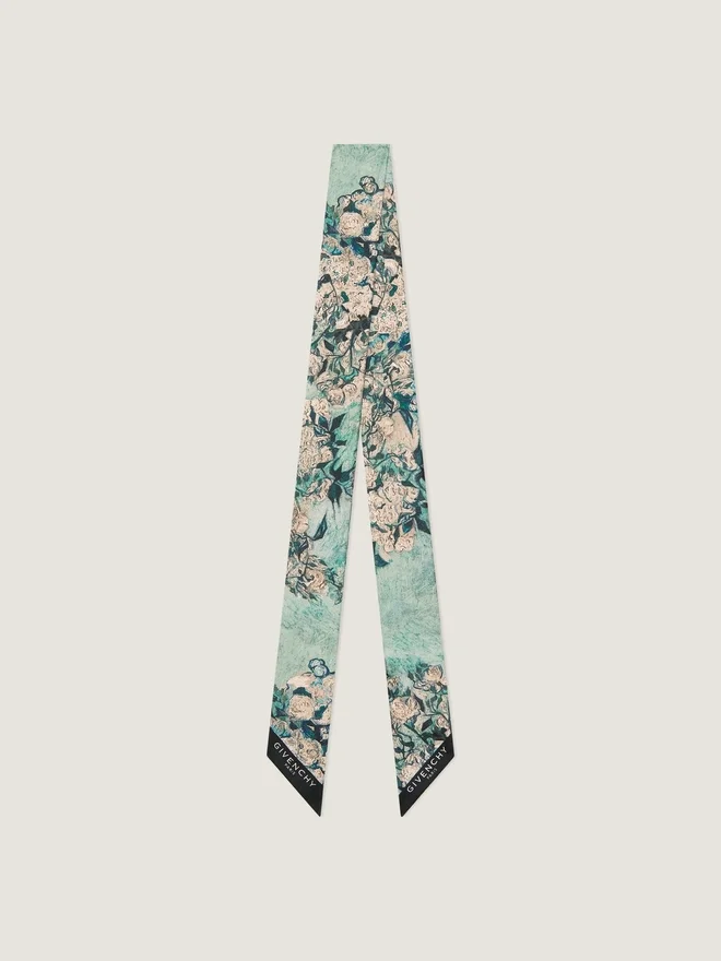 Bandeau din twill de mătase. Imprimeu cu trandafiri inspirat de tușele de pensulă. Capete teșite cu semnătura Givenchy Paris în contrast.