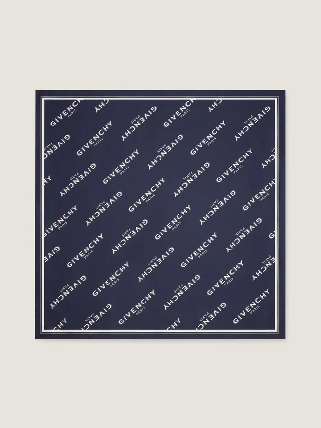 Pătrat din sârgă de mătase. Imprimeu Givenchy Paris Shadow pe toată suprafața. Margini rulate manual.