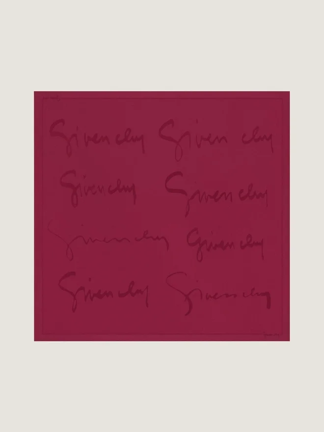 Eșarfă pătrată din mătase jacquard. Model jacquard integral, semnătura lui Hubert De Givenchy. Margini rulate manual.