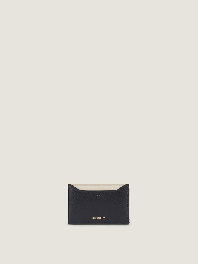 Portcard din piele de vițel lucioasă. Linia Day. Semnătura Givenchy aurie pe față. Semnătura Givenchy embosată termic pe