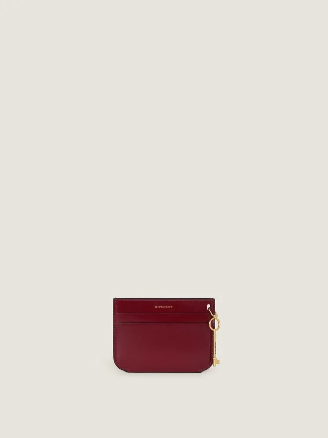 Portcard din piele de vițel. Linia Lucky Charms. Semnătura Givenchy aurie pe față. Pandantiv-cheie gravat Givenchy în