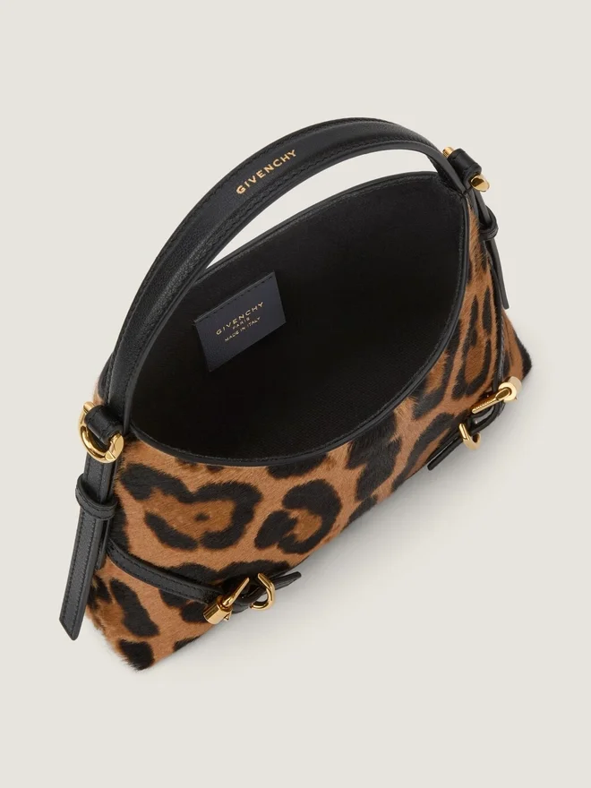 Geantă de mână Nano din piele de vițel cu efect de ponei și model leopard. Linia Voyou. Mâner scurt din piele cu logo Givenchy auriu