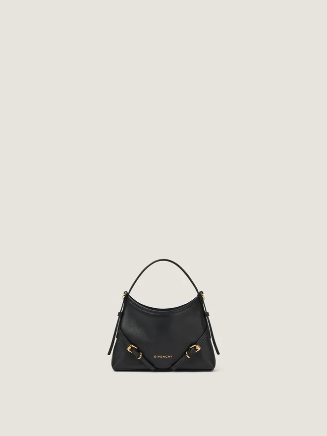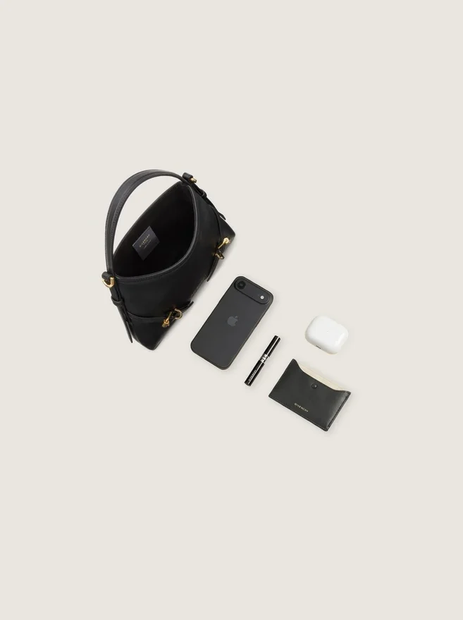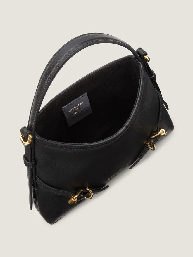Geantă de mână Nano din piele de vițel fină și lucioasă de calitate superioară.Linia Voyou.Mâner scurt din piele.Curea subțire detașabilă din piele, care permite purtarea pe umăr.Semnătura Givenchy în relief pe partea din față a genții. Catarame metalice gravate cu sigla Givenchy. Detalii metalice cu finisaj auriu. Un compartiment principal. Căptușeală din pânză.CuloareNegruCompoziție100% piele de vițel.Dimensiuni18 cm x 13,5 cm x 3,5 cmLungime cureaMin: 21,3 in