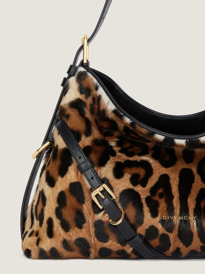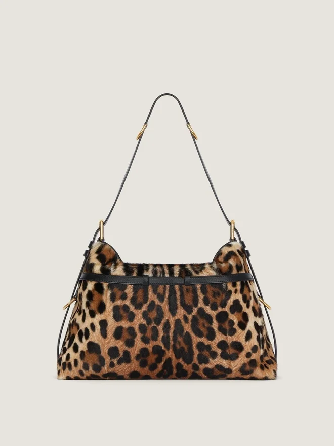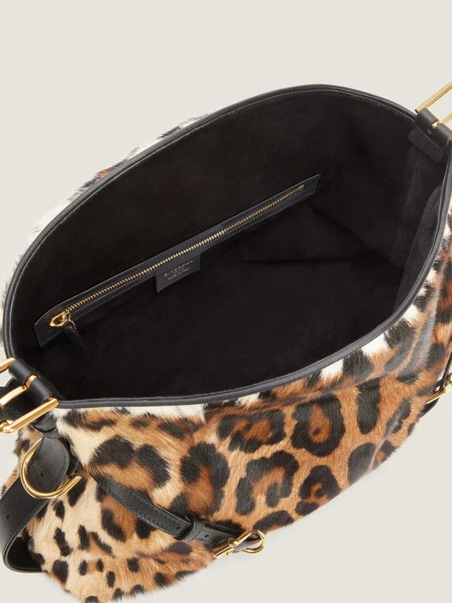 • Geantă de umăr medie din păr de capră cu imprimeu leopard.• Linia Voyou.• Siluetă lejeră în formă de V și volum generos.• Curea de umăr reglabilă care permite purtarea în mână, pe umăr sau în bandulieră.Semnătura Givenchy din metal pe partea din față a genții și în relief pe partea superioară a genții de umăr. Catarame delicate din metal gravate cu sigla Givenchy. Detalii metalice cu finisaj auriu.• Un compartiment principal și un buzunar cu fermoar în interior. • Căptușeală din piele de căprioară. Material secundar: 100% piele de vițel.Dimensiuni15 in x 12,2 in x 3,9 inLungime cureaMin: 9,8 in • Max: 21,7 in 7,1 in x 5,3 in x 1,4 in Portcard Da Etui pentru ochelari – Umbrelă de buzunar – iPhone 13 Da Carte de buzunar – iPad Pro – MacBook Air -Ce încape în Voyou Bag? Dimensiuni: 11,6 in x 4,3 in x 6,5 in
