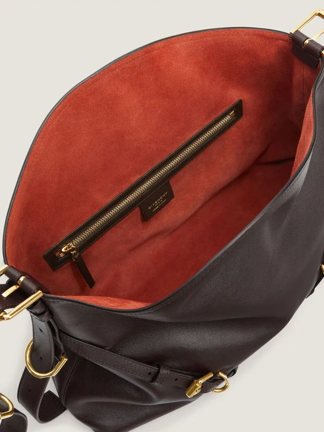 Geantă de umăr medie din piele de vițel netedă și lucioasă de calitate superioară.Linia Voyou.Siluetă lejeră în formă de V și volum generos.Curea de umăr reglabilă, care permite purtarea în mână, pe umăr sau în bandulieră.Semnătura Givenchy gravată pe partea din față a genții și pe partea superioară a genții de umăr. Catarame metalice delicate cu inscripția Givenchy gravată. Detalii metalice cu finisaj auriu. Un compartiment principal și un buzunar cu fermoar în interior. Căptușeală din piele de căprioară.CuloareCiocolatăDimensiuneMediuCompoziție100% piele de vițel.Dimensiuni15 in x 12,2 in x 3,9 inLungime cureaMin: 9,8 in • Max: 21,7 in 7,1 in x 5,3 in x 1,4 in Portcard Da Etui pentru ochelari – Umbrelă de buzunar – iPhone 13 Da Carte de buzunar – iPad Pro – MacBook Air -Ce încape în Voyou Bag? Dimensiuni: 11,6 in x 4,3 in x 6,5 in
