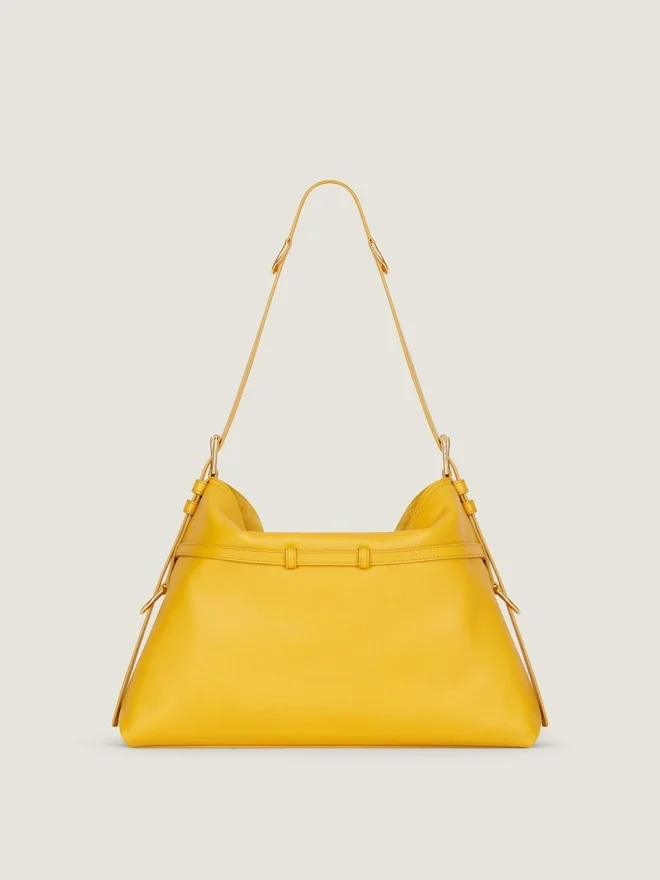 Geantă de umăr medie din piele de vițel netedă și lucioasă de calitate superioară.Linia Voyou.Siluetă lejeră în formă de V și volum generos.Curea de umăr reglabilă, care permite purtarea în mână, pe umăr sau în bandulieră.Semnătura Givenchy gravată pe partea din față a genții și pe partea superioară a genții de umăr. Catarame metalice delicate cu inscripția Givenchy gravată. Detalii metalice cu finisaj auriu. Un compartiment principal și un buzunar cu fermoar în interior. Căptușeală din piele de căprioară.CuloareMuștarCompoziție100% piele de vițel.Dimensiuni38 cm x 31 cm x 10 cmLungime cureaMin: 9,8 in • Max: 21,7 in 18 cm x 13,5 cm x 3,6 cm Portcard Da Etui pentru ochelari – Umbrelă de buzunar – iPhone 13 Da Carte de buzunar – iPad Pro – MacBook Air -Ce încape în Voyou Bag? Dimensiuni: 29,5 cm x 11 cm x 16,5 cm