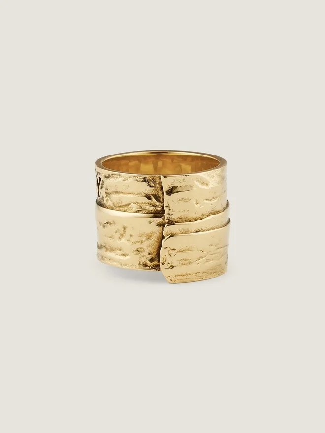 Inel din metal texturat cu finisaj auriu. Linia Givenchy Tape. Givenchy Paris 1952 în email negru pe partea din față. Semnătura Givenchy