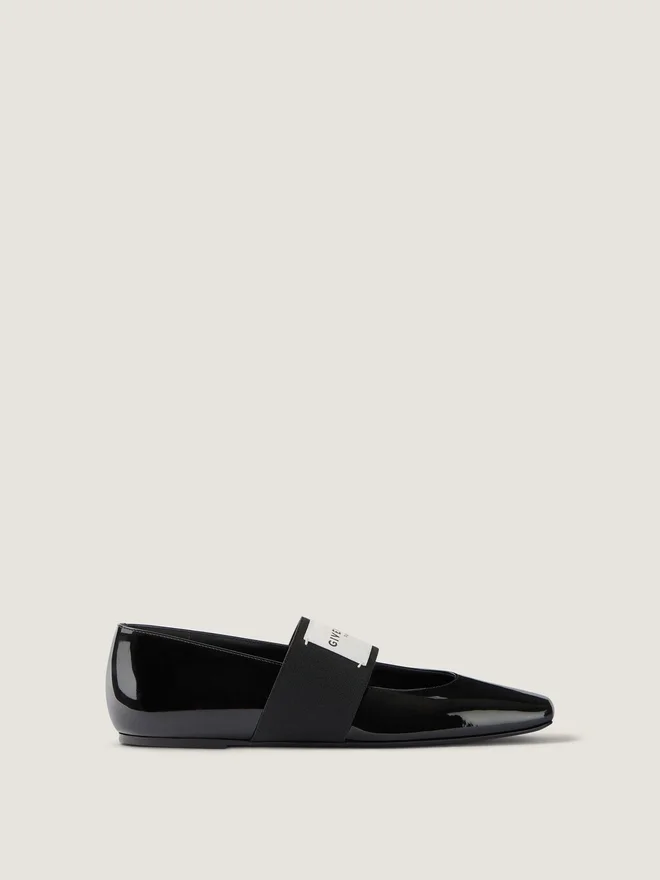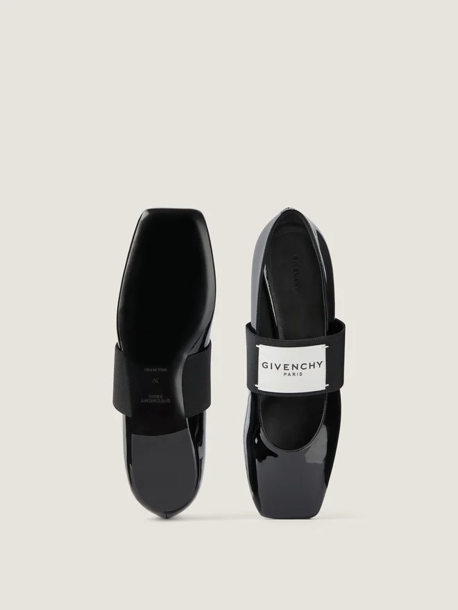 Balerini fără toc din piele de vițel lăcuită. Linie pătrată tăiată. Bandă elastică cu etichetă din piele Givenchy Paris. Givenchy