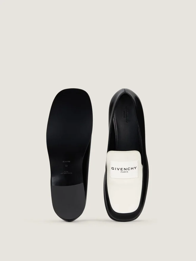 Mocasini din piele de vițel bicoloră. Linia Tux. Etichetă Givenchy Paris din piele cusută pe partea superioară. Semnătura Givenchy Paris