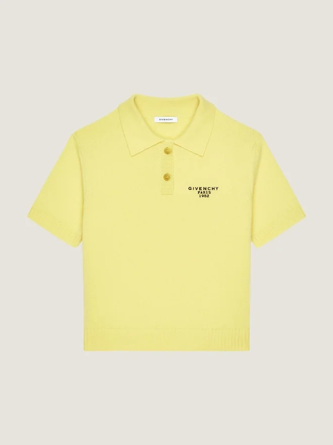 Ștampila GIVENCHY este un motiv autentic preluat de pe invitațiile la prezentările de modă haute couture de la istoricul Hotel Caraman, situat pe Avenue George V nr. 3, sediul parizian al casei GIVENCHY.Tricou polo cu mâneci scurte din lână și cașmir.Guler polo cu nasturi.Semnătura Givenchy Paris 1952 brodată pe piept.Tiv și mâneci cu nervuri.Modelul are 1,77 m înălțime și poartă mărimea XS.ÎngrijireNu spălațiCăliți la temperatura maximă a tălpii fierului de călcat (110 °C) fără aburNu uscați în uscătorNu înălbițiCurățare chimică profesională, cu tetracloroetilenă și hidrocarburi, Tratament foarte moderatȚara de origineItaliaCod produsBwl0084Zsn-725 Informații privind îngrijirea Atelierele noastre creează cu îndrăzneală și creativitate articole vestimentare unice, confecționate din materiale de înaltă calitate.Pentru a păstra strălucirea produsului dvs. Givenchy, vă recomandăm să îl depozitați într-o husă de bumbac și într-un loc uscat și răcoros. Curățarea chimică este recomandată pentru majoritatea produselor noastre. Vă rugăm să urmați instrucțiunile de îngrijire de pe eticheta articolului dvs. Nu ezitați să vizitați pagina noastră dedicată sau să contactați direct echipele noastre Givenchy dacă doriți informații suplimentare.Nu spălațiCăliți la temperatura maximă a tălpii (110 °C) fără aburNu uscați în uscătorNu înălbițiCurățare chimică profesională, cu tetracloroetilenă și hidrocarburi, tratament foarte moderat