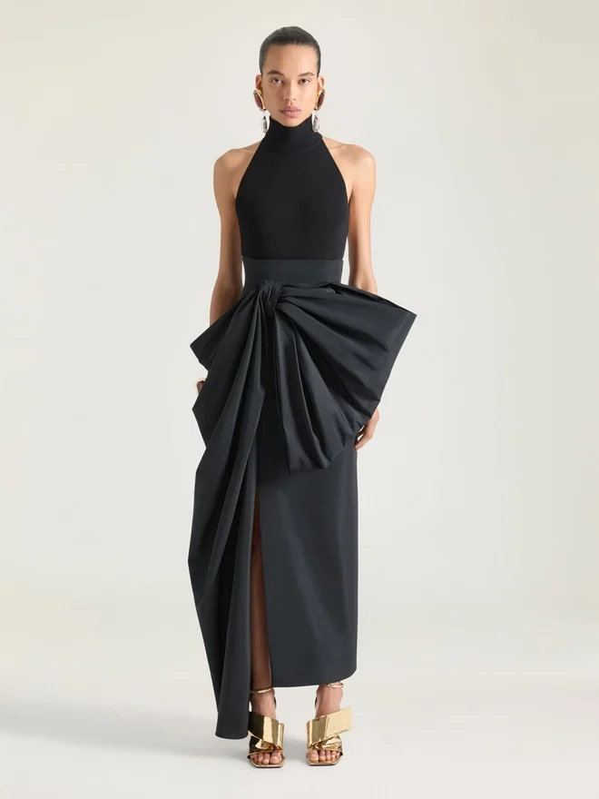Top cu gât halter din lână și viscoză