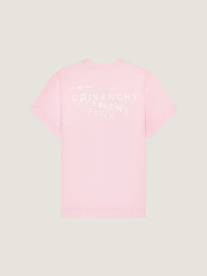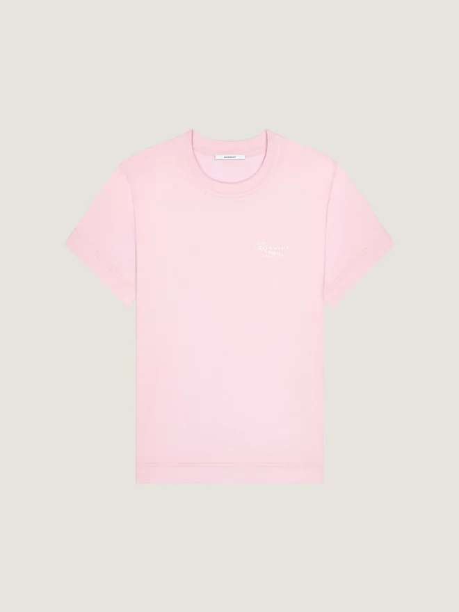Ștampila Givenchy este un motiv autentic preluat de pe invitațiile la prezentările de modă haute couture de la istoricul Hotel Caraman, situat pe Avenue George V nr. 3, sediul parizian al casei Givenchy. Tricou cu mâneci scurte din bumbac.• Guler rotund. • Imprimeu mic cu sigla Givenchy pe piept. • Imprimeu cu sigla Givenchy pe spate. • Modelul are 1,77 m înălțime și poartă mărimea S. D CuloareD Roz deschisD CompozițieD 100% bumbac.D Îngrijire• Spălare la maximum 30 °C, ciclu delicat• Calcați la temperatura maximă a tălpii (110 °C) Fără aburNu uscați în uscătorNu înălbițiNu curățați chimicȚara de originePortugaliaCod produsBw70Fjp7A7-681 Informații privind îngrijirea Atelierele noastre creează cu îndrăzneală și creativitate articole vestimentare unice, realizate din materiale de înaltă calitate. Pentru a păstra strălucirea produsului dvs. Givenchy, vă recomandăm să îl păstrați într-o husă de bumbac și într-un loc uscat și răcoros. Curățarea chimică este recomandată pentru majoritatea produselor noastre. Vă rugăm să urmați instrucțiunile de îngrijire de pe eticheta articolului dvs. Nu ezitați să vizitați pagina noastră dedicată sau să contactați direct echipele noastre Givenchy dacă doriți informații suplimentare.Spălare la maximum 30 °C, ciclu delicatCălcați la temperatura maximă a tălpii (110 °C) fără aburNu uscați în uscătorNu înălbițiNu curățați chimic